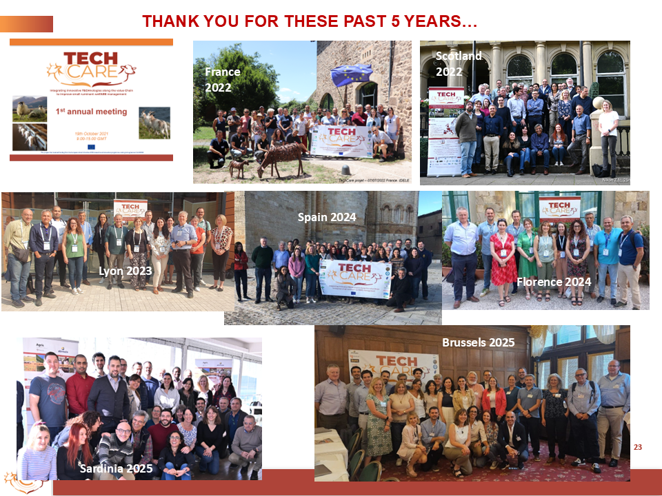 The project aimed to improve the welfare management of small ruminants through innovative and accessible technological solutions for farmers. The project, led by Scotland’s Rural College, comprised 19 partners in 9 different countries. TechCare targeted sheep (milk and meat) and goat (milk) production sectors, taking into account the specificities of each type of production, from farming to transport. Structured in five main steps, TechCare first planned to identify and prioritize animal welfare risk factors by country and sector. Subsequently, the consortium identified promising technologies to manage these risks, before testing them under real conditions in pilot farms. Effective technologies were then validated on a larger scale with willing commercial farmers. Finally, the project developed innovative alert systems enabling proactive management of animal welfare. A key element of the project was the continuous involvement of farmers and stakeholders from the outset. The consortium organized national workshops from the beginning to present the objectives of TechCare, regularly gather feedback from stakeholders, and adapted the project’s strategic choices to their real expectations and needs. This multi actor and collaborative approach ensured both the relevance of the proposed technologies and their impact on the ground.